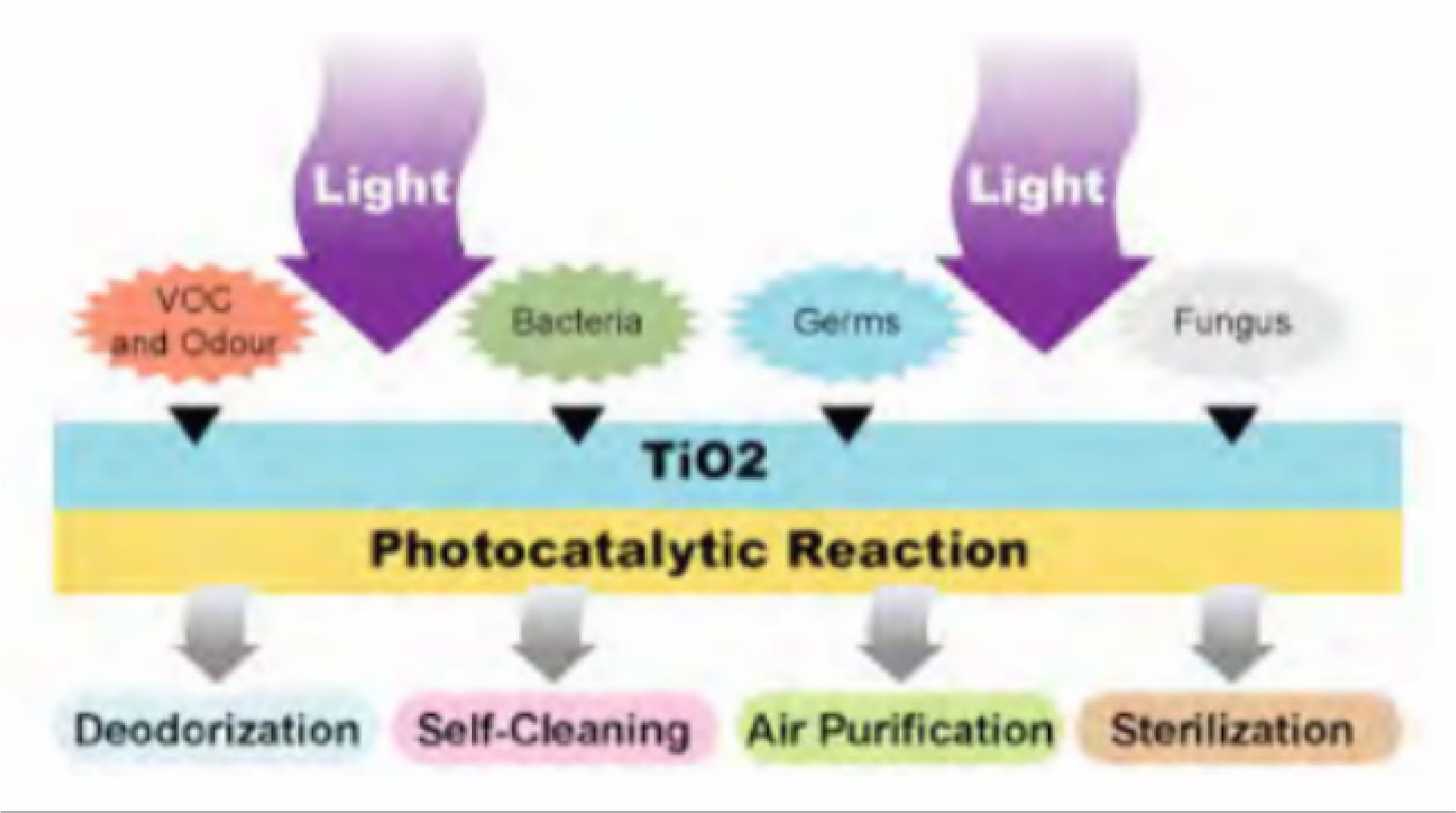 For more than 30 years, based on the ” Honda-Fujishima Effect”, after continuous research by many enterprises and experts, the research of photocatalytic technology has finally made a breakthrough, and the photocatalytic technology has begun to meet the requirements of industrial production. At present, environmental protection materials in various forms such as powders, solutions, gels, and coatings can be made under industrial conditions.